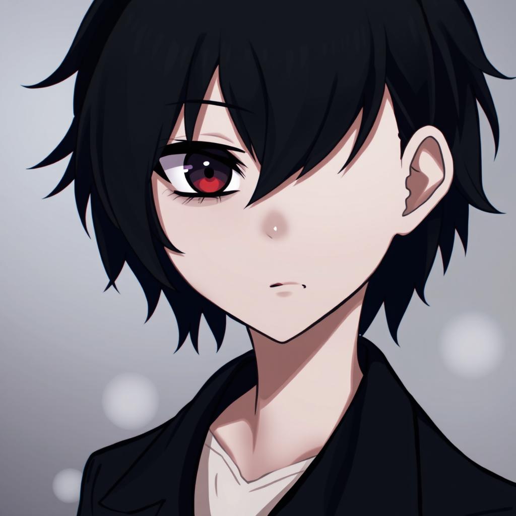 Adorable Emo Anime Boy with Heterochromia Prompt:Garoto de heterocromia,um olho preto e o outro vermelho,cute,Ghoul.Anime Boy,emo,Cabelos Pretos(eye black and eye red) COPY PROMPT