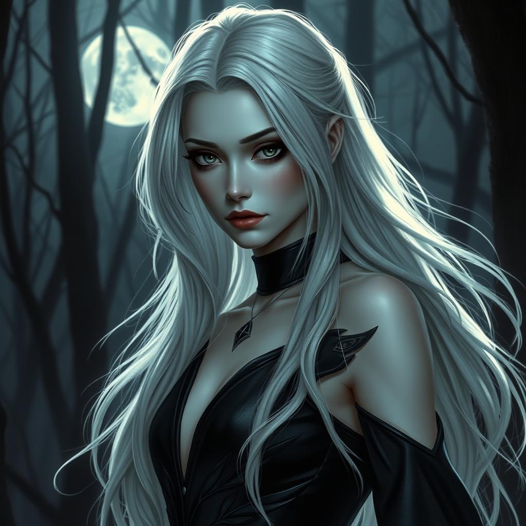 shadar kai female white hair black eyes