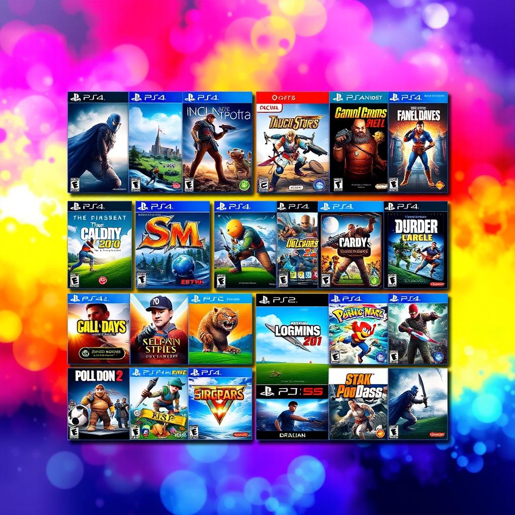 Epic Video Game Cover Art: A Visual Tribute Prompt:Necesito una portada donde haya varias caratulas de videojuegos sin letras COPY PROMPT