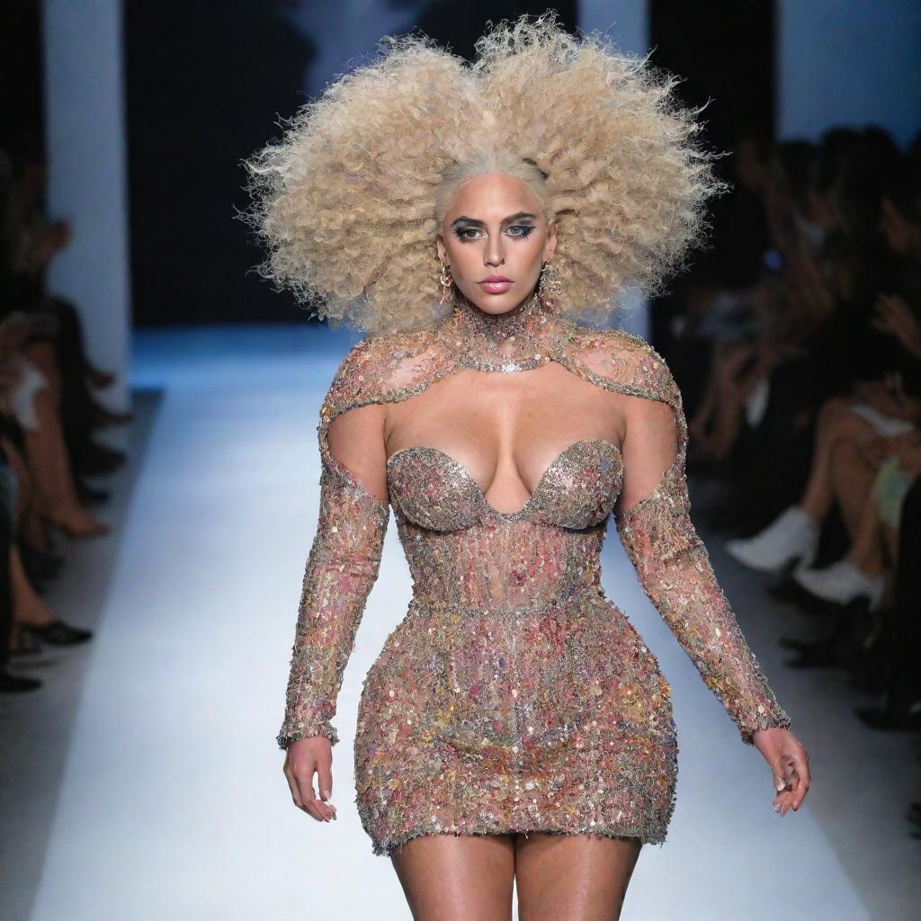 Lady Gagas Unforgettable Fashion Design Debuts on the Runway Prompt:Model on runway, fashion designed by lady gaga COPY PROMPT