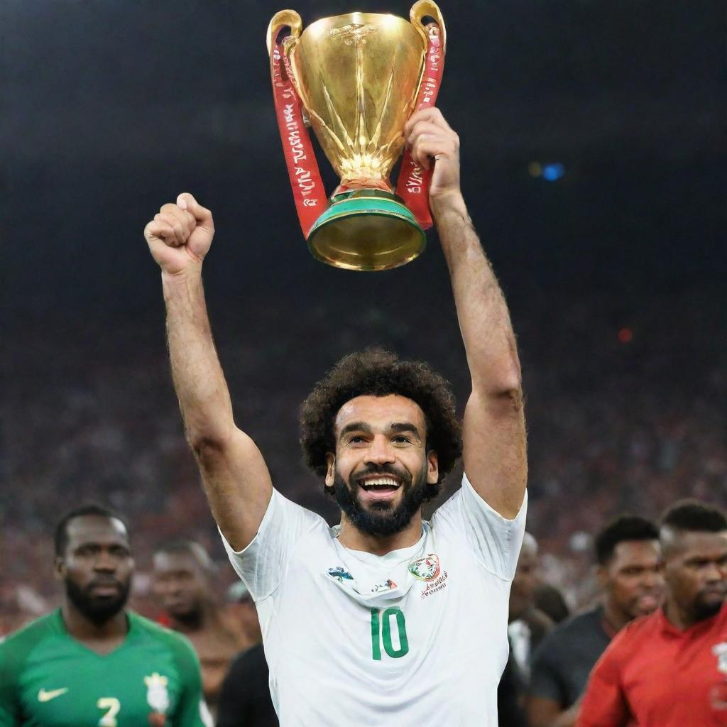 Mohamed Salah, Ghana, African Nations Cup Winner Prompt:اللاعب محمد صلاح يحمل كأس امم افريقيا COPY PROMPT