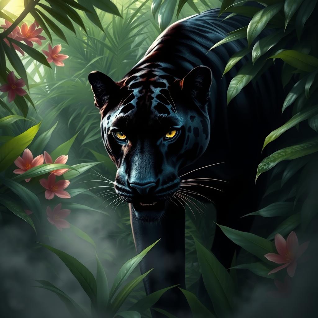 Mystical Encounter: Black Panther in Lush Jungle