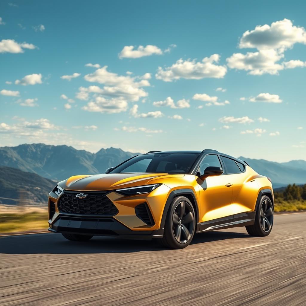 Unleash Innovation: Corvette C8 Meets 2024 Toyota Crown CUV Prompt:fuse Corvette C8 and Toyota Crown 2024, 4-door, CUV, matte gold, driving, mountains in the far background, blue sky with small clouds COPY PROMPT